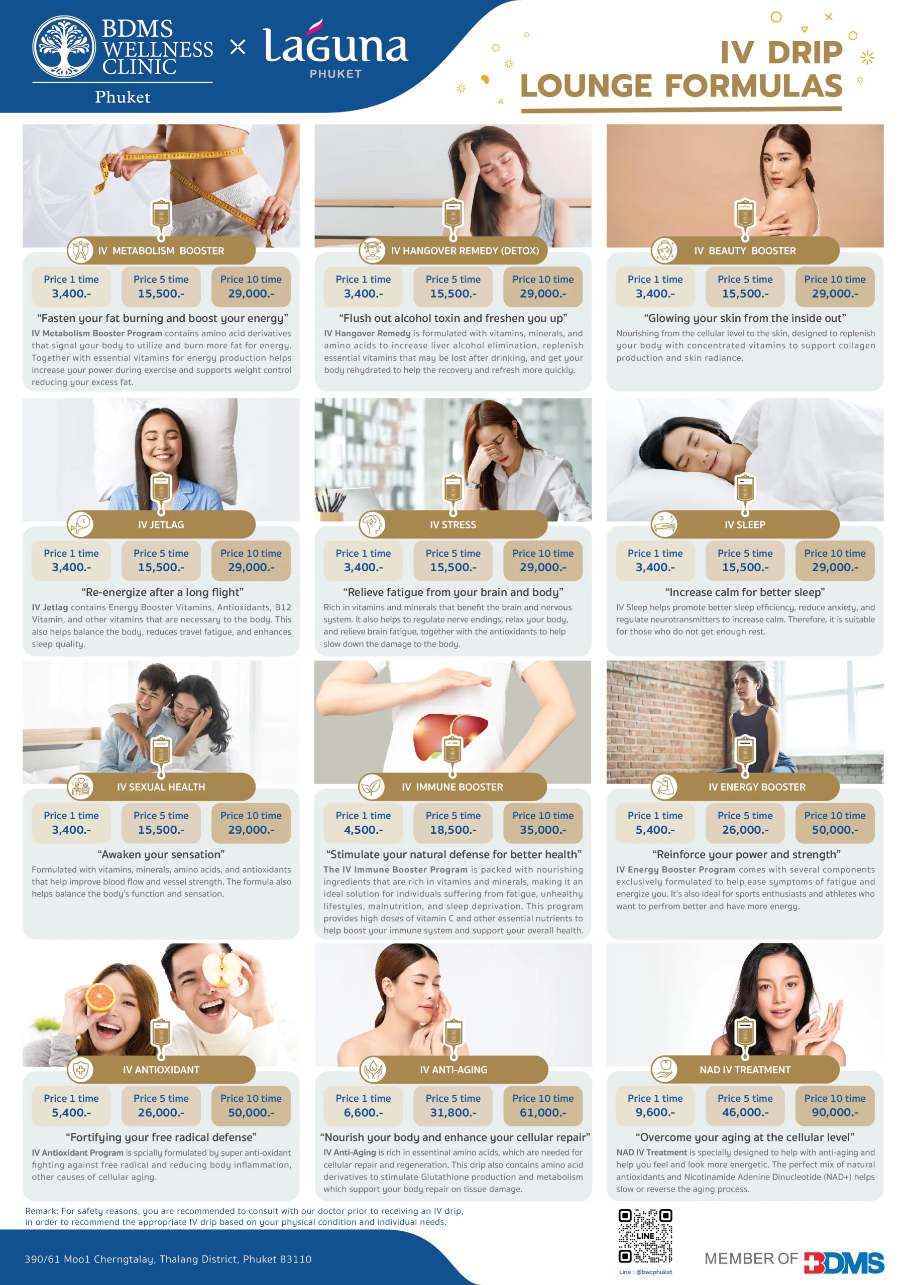 IV Jetlag contains Energy Booster Vitamins, Antioxidants, B12 Vitamin, and other vitamins that are necessary to the body. This also helps balance the body, reduces travel fatigue, and enhances sleep quality.