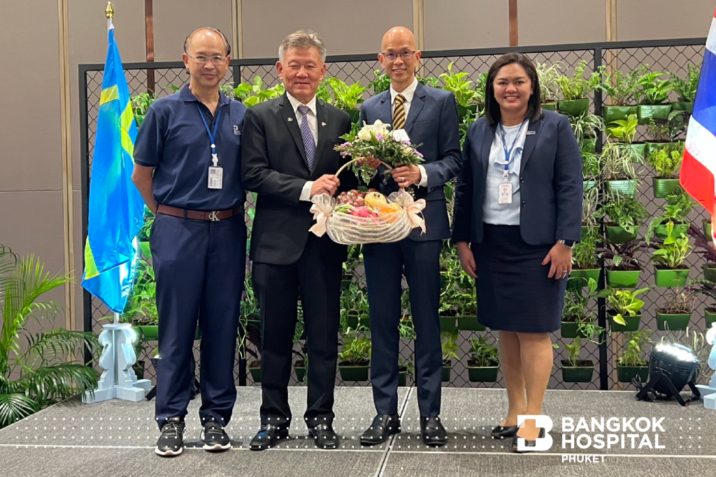 คุณภูมิกิตติ์ รักแต่งาม ผู้อำนวยการฝ่ายการตลาด โรงพยาบาลกรุงเทพภูเก็ต ร่วมแสดงความยินดีกับคุณสมบูรณ์ จิรายุส ในโอกาสได้รับการแต่งตั้งเป็นกงสุลกิตติมศักดิ์ราชอาณาจักรสวีเดนจังหวัดภูเก็ต ณ Phuket Marriott Merlin Beach เมื่อวันที่ 20 พฤศจิกายน 2566 ที่ผ่านมา