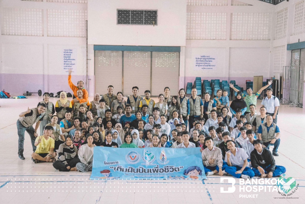 คุณณปภัช โชติบุญฐิสา ผู้อำนวยการศูนย์พัฒนาบุคลากรทางการเเพทย์ เครือกรุงเทพดุสิตเวชการ กลุ่มภาคใต้ และคณะพยาบาล พร้อมกับเจ้าหน้าที่โรงพยาบาลกรุงเทพภูเก็ต ร่วมกิจกรรมโครงการเติมฝันปันชีวิต โดยมูลนิธิเวชดุสิตฯ และชมรมครูอาสา Share for Life Join for Love เพื่อส่งต่อทักษะการช่วยชีวิตและการเอาตัวรอดทางน้ำ ให้แก่นักเรียนและครู โรงเรียนเกาะยาววิทยา ร่วมเป็นส่วนหนึ่งในการขับเคลื่อนและขยายผลมาตรฐานความปลอดภัย ตลอดจนเพิ่มอัตราการรอดชีวิตของผู้ประสบเหตุ ณ โรงเรียนเกาะยาววิทยา จังหวัดพังงา เมื่อวันที่ 27-28 พฤศจิกายน 2566 ที่ผ่านมา