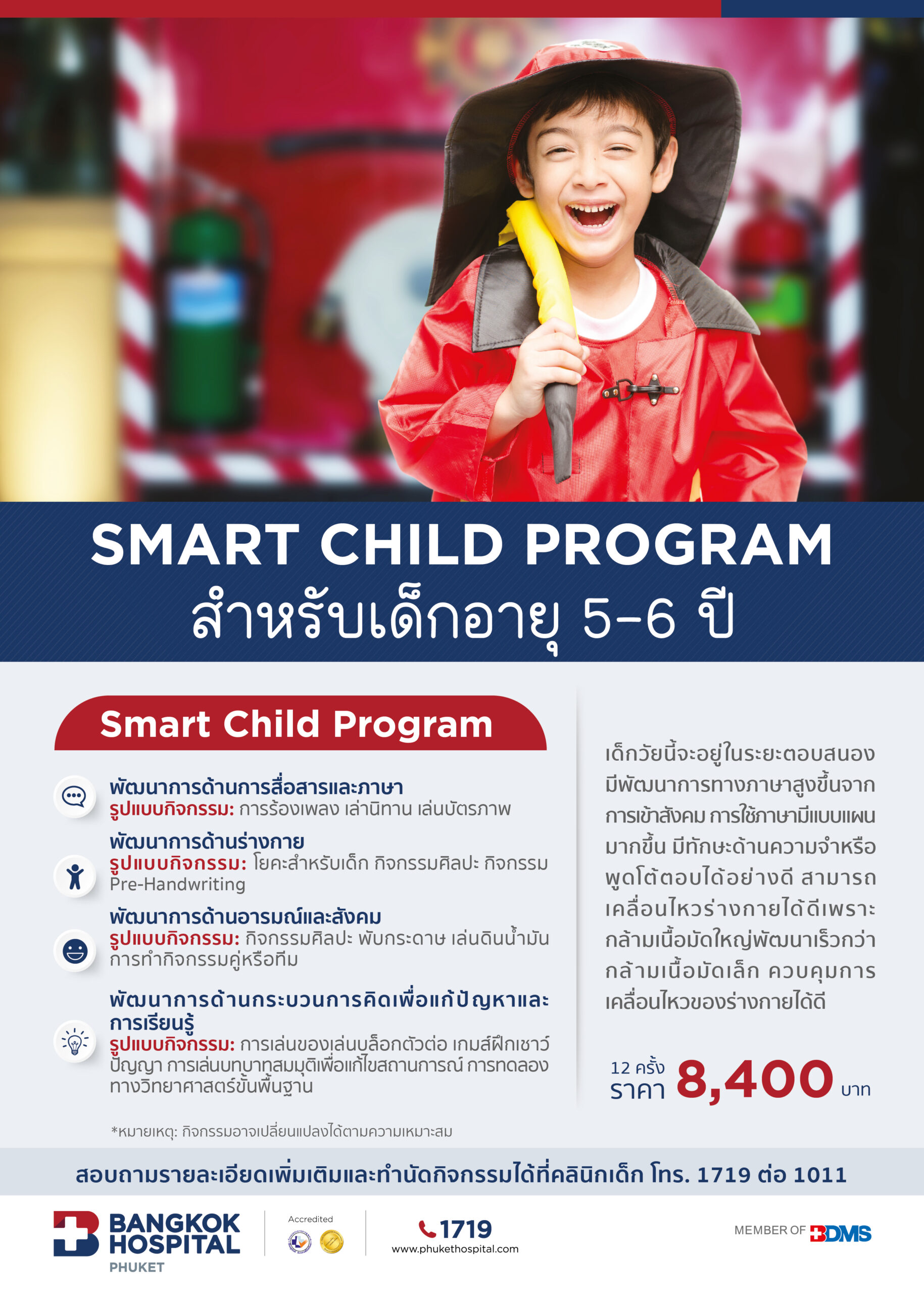 Smart Child Program (สำหรับเด็กอายุ 5-6 ปี) 8,400 LINE iconLINE ติดต่อสอบถาม สอบถามเพิ่มเติม คลินิกเด็ก (กุมารเวช) (ชั้น 1) เปิดบริการทุกวัน ตั้งแต่ 08.00 – 17.00 น. Facebook icon m.me/BangkokHospitalPhuket LINE icon https://lin.ee/sEb3wvo info@phukethospital.com 076 254 425 ต่อ 1011